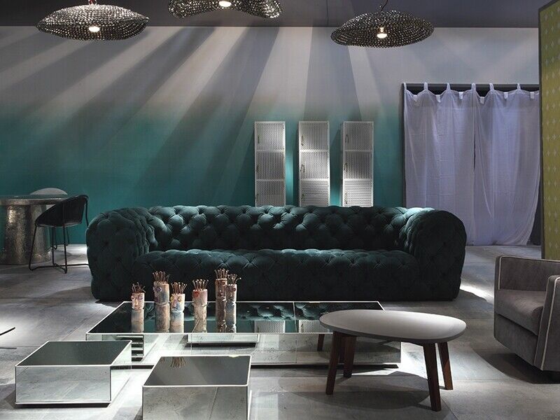 Luxus Chesterfield Samt Verlour Dreisitzer Stoff Couchen Polster Sofa