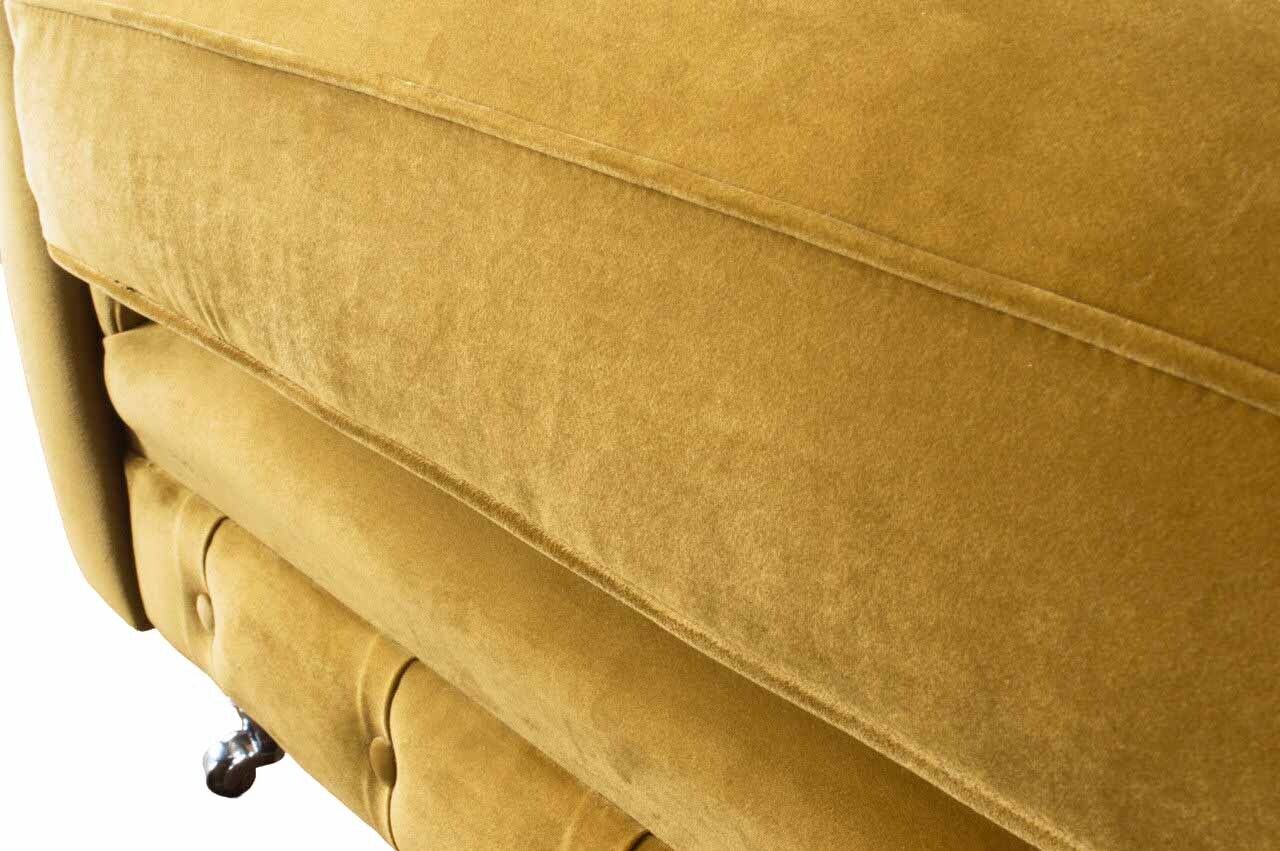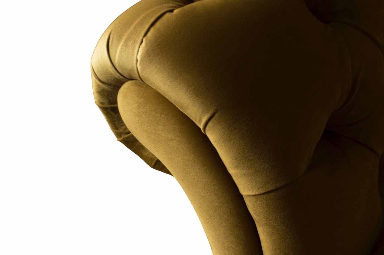 Entspannen Sie stilvoll mit unserem luxuriösen Chesterfield Sessel aus Stoff! Dieses moderne Wohnzimmermöbelstück besticht durch sein elegantes Design und seine erstklassige Qualität. Mit Maßen von ca. 130 x 80 x 90 cm bietet der Sessel optimalen Komfort. Die Sitzhöhe von ca. 42 cm und die Sitztiefe von ca. 52 cm sorgen für eine gemütliche Sitzposition. Wählen Sie Ihre Lieblingsfarbe aus einer Vielzahl von Optionen und entscheiden Sie sich für das passende Material, wie z.B. Textil und Holz. Optional können Sie zwischen Premium Kunstleder/Stoff, Premium Echtleder, Premium Samtstoff oder dem Magic Home Stoff wählen, der fleckenabweisend ist. Darüber hinaus bieten wir verschiedene Größen an, darunter 5-Sitzer, 4-Sitzer, 3-Sitzer, 2-Sitzer oder 1-Sitzer. Falls Sie eine Sondergröße oder Maßanfertigung wünschen, nehmen Sie einfach Kontakt mit uns auf. Dieser hochwertige Sessel ist mit einem Innengestell aus echtem Holz und Federkern ausgestattet. Entscheiden Sie sich zusätzlich für Kristallsteine anstelle von Knöpfen, um dem Sessel eine luxuriöse Note zu verleihen. Gönnen Sie sich diesen exquisiten Sessel und machen Sie Ihr Wohnzimmer zu einer luxuriösen Wohlfühloase!