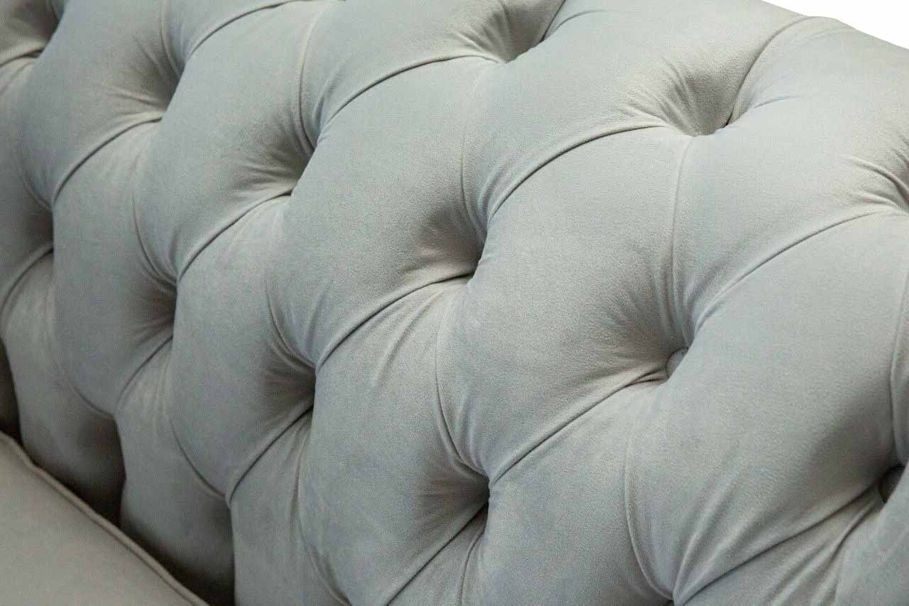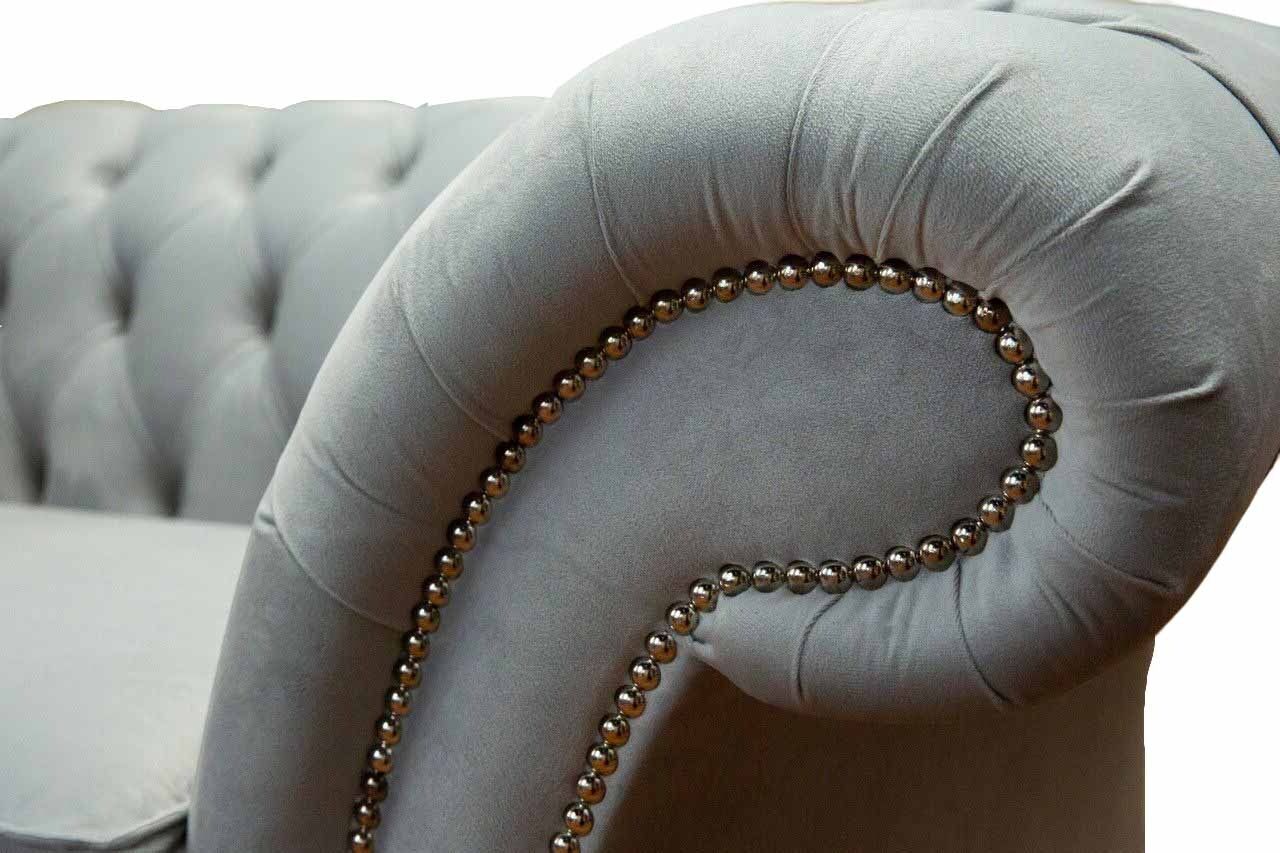 Entspannen Sie in Stil und Komfort mit unserem hochwertigen Sessel Polster Sofa Textil Chesterfield Couchen 1 Sitzer Einsitzer in Grau. Hergestellt aus hochwertigem Textil und Holz, bietet dieser Sessel eine gemütliche Sitzmöglichkeit für Ihr Zuhause. Mit Maßen von ca. 130 x 80 x 90 cm und einer Sitzhöhe von ca. 42 cm, können Sie sich in diesem stilvollen Möbelstück entspannen. Wählen Sie Ihre Lieblingsfarbe aus unserem breiten Sortiment oder fragen Sie nach anderen Farboptionen. Zudem bieten wir verschiedene Materialoptionen, darunter Premium Kunstleder, Echtleder, Samtstoff oder Fleckenabweisender Stoff, für einen individuellen Look an. Unser Sessel kann auch in anderen Größen wie 5-Sitzer, 4-Sitzer, 3-Sitzer oder 2-Sitzer bestellt werden. Auf Wunsch sind Sondergrößen oder Maßanfertigungen möglich. Mit einem Innengestell aus echtem Holz und Federkern, ist dieser Sessel nicht nur stilvoll, sondern auch langlebig. Entdecken Sie die Optionen für Kristallsteine anstelle von Knöpfen und passen Sie Ihren Sessel mit echten Swarovski Kristallsteinen an. Gönnen Sie sich Luxus und Stil in einem Möbelstück!