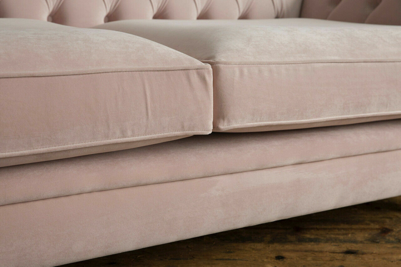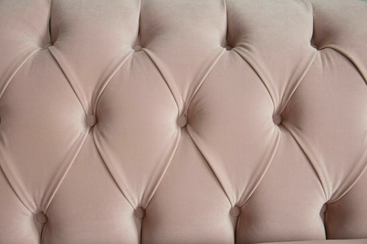 Klassische Chesterfield Couch 4 Sitzer Sofa Couch Samt Leder Design Rosa 240cm