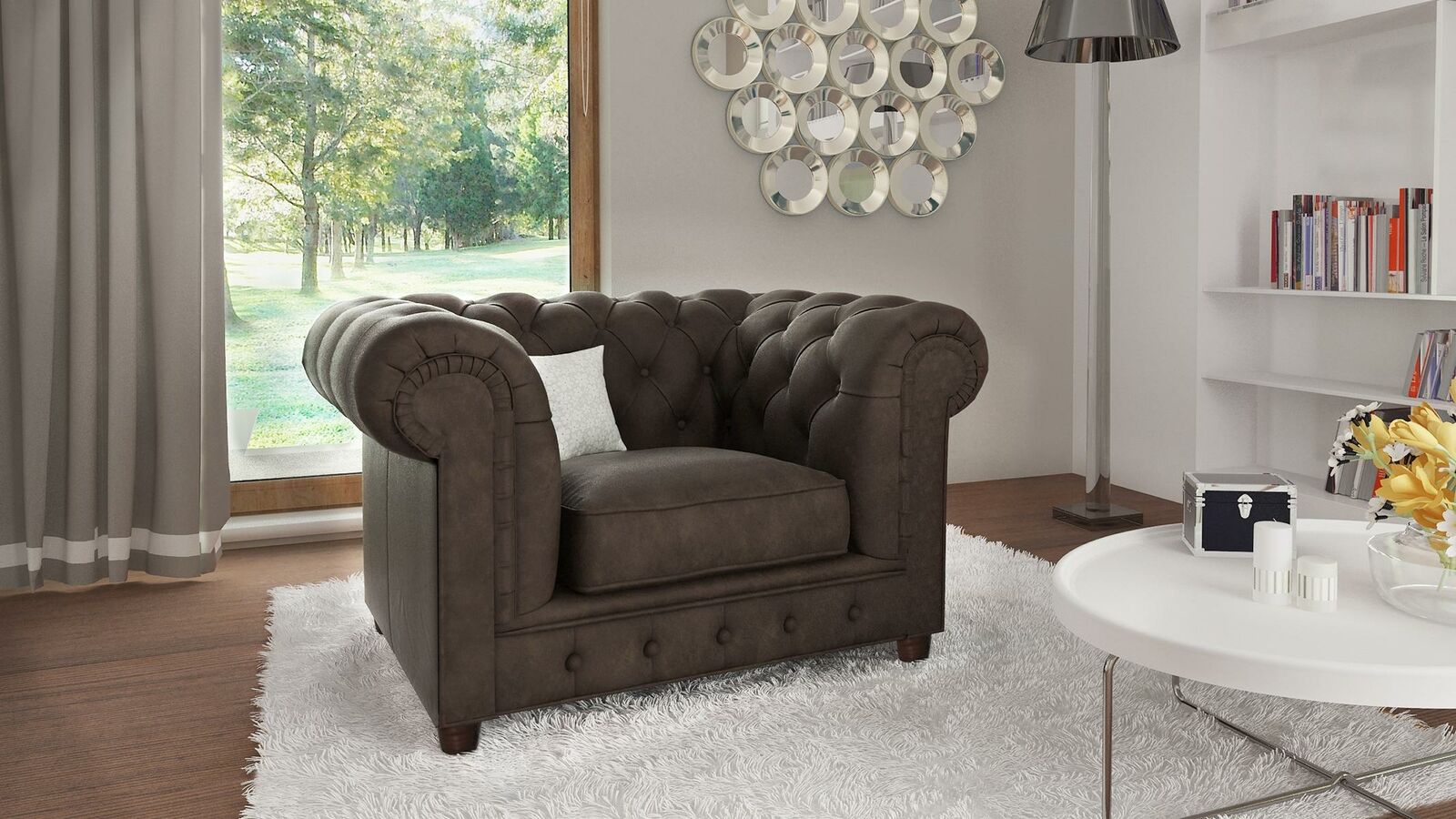 Wohnzimmersessel, Textilsessel, gepolsterter Sessel, Chesterfield