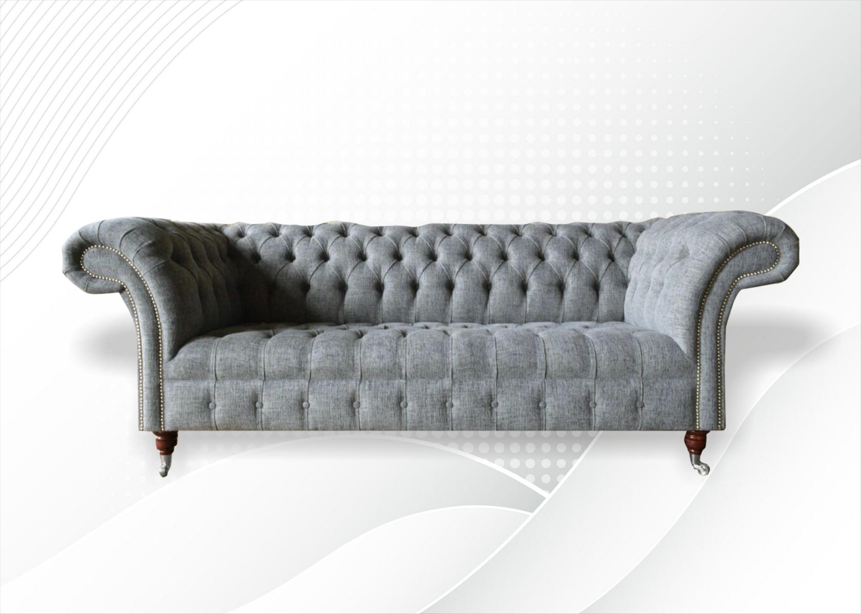 Entdecken Sie das Stoff-Sofa Couch Polster Garnitur in edlem Chesterfield-Design! Hergestellt aus hochwertigem Textilmaterial in Grau und samtweichem Premium Samt Stoff, bietet dieses 3-Sitzer Sofa nicht nur höchsten Komfort, sondern auch eine stilvolle Ergänzung für Ihr Wohnzimmer. Mit Maßen von ca. 225 cm x 98 cm x79 cm (B x T x H) und einer bequemen Sitzhöhe von ca. 44 cm lädt dieses Sofa zum Entspannen ein. Sie haben die Möglichkeit, die Farbe des Sofas frei zu wählen, ebenso wie das Material. Entscheiden Sie sich zwischen Premium Kunstleder/Stoff, Premium Echtleder aus Italien, Premium Samt Stoff oder dem innovativen Magic Home Fleckenabweisenden Stoff. Optional sind auch andere Größen wie 4-Sitzer, 5-Sitzer, 2-Sitzer oder 1-Sitzer erhältlich. Die individuelle Gestaltung Ihres Sofas liegt uns am Herzen. Stellen Sie Ihre Anfrage noch heute für eine Sondergröße oder Maßanfertigung! Mit echtem Holz-Innengestell und in Handarbeit gefertigt, wird dieses Sofa zum Highlight Ihres Wohnzimmers. Tauchen Sie ein in pure Gemütlichkeit und Luxus mit diesem exklusiven Stoff-Sofa!