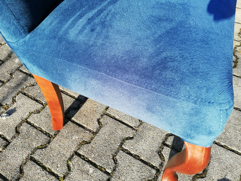 Material:  Velour Bezug, Naturholz Gestell