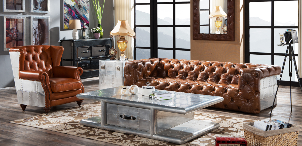 Couchtisch Tisch Wohnzimmertisch Aluminium im Retro Flugzeug design tische alu