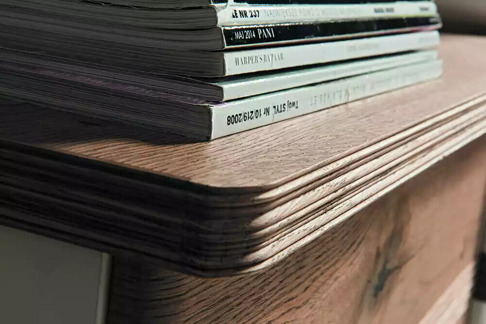 Rückwand & Einlegeböden: MDF (Mittledichte Holzfaserplatte), funiert & lackiert