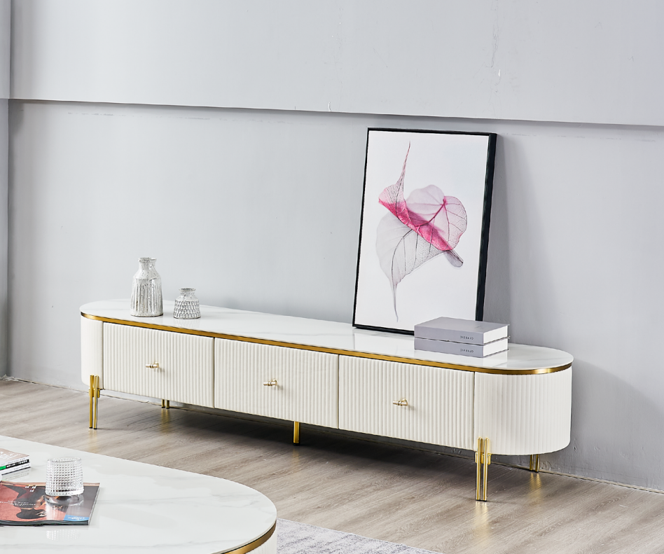 Präsentieren Sie Ihr Entertainment-Equipment stilvoll und modern in Ihrem Wohnzimmer mit dem TV Ständer RTV Lowboard in Weiß. Dieses brandneue Möbelstück von XL Möbel beeindruckt nicht nur durch sein zeitgemäßes Design, sondern auch durch seine hochwertige Verarbeitung aus Holz und Edelstahl. Mit Maßen von ca. 200 x 40 x 41,5 cm bietet das RTV Lowboard ausreichend Platz für Ihren Fernseher und andere Geräte. Holen Sie sich jetzt dieses schicke Sideboard und verleihen Sie Ihrem Wohnraum einen Hauch von Eleganz!