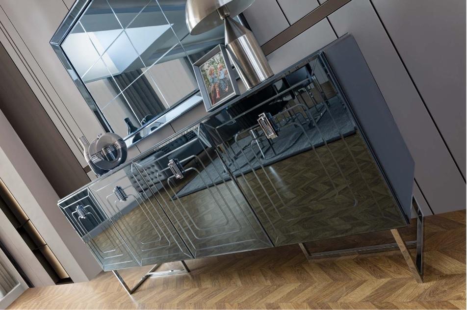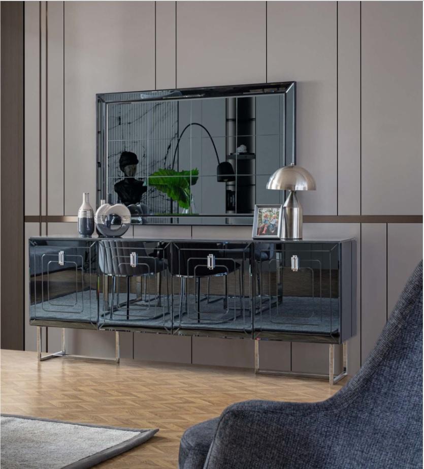 Graue Esszimmer Möbel Glasspiegel Designer Edelstahl Anrichte Luxus Set