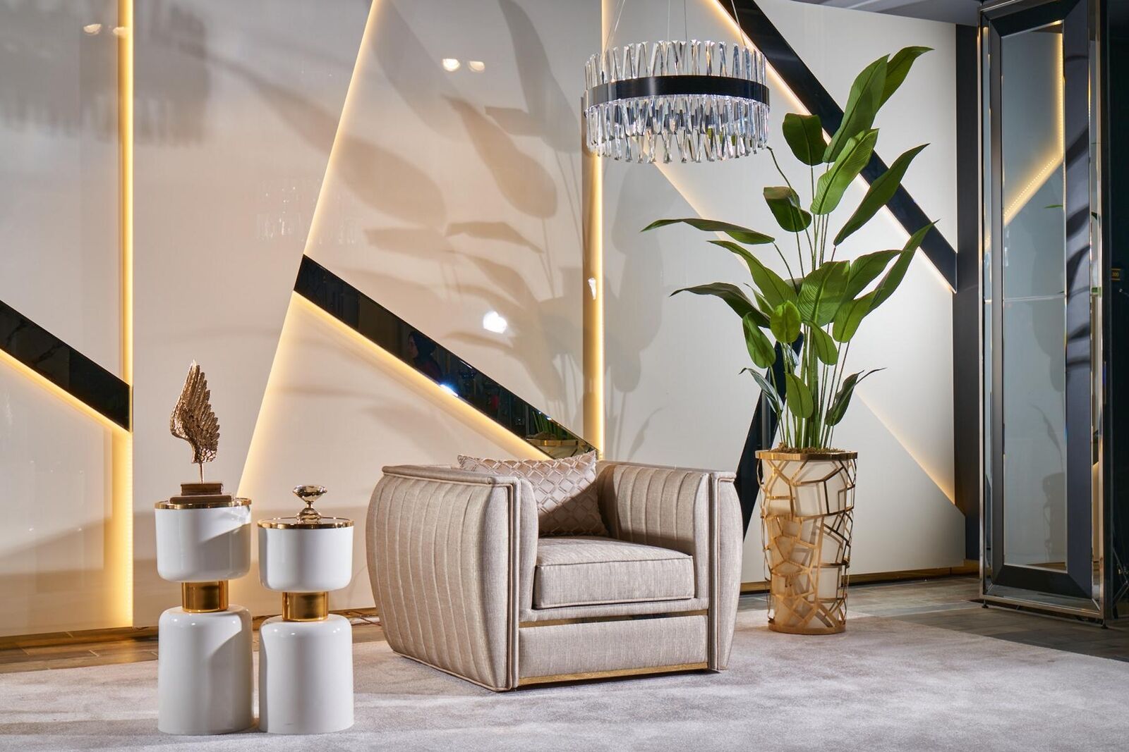 Sessel Design Wohnzimmer Polster Holz Moderne Luxus Neu Farbe beige