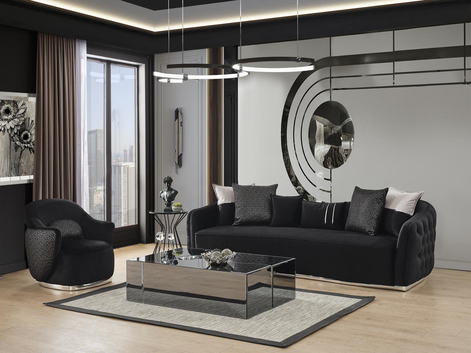 Sessel Design Polster Textil Design Modern Holz Wohnzimmer schwarz