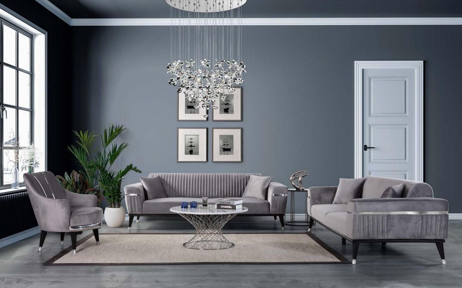 Sessel Einsitzer Sofas Wohnzimmer Textil Stoff Möbel Farbe Grau